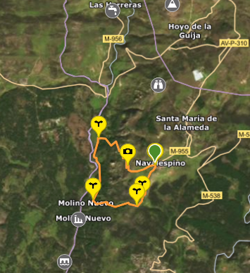 Este recorrido nos invita a conocer un antiguo caminos entre Las Navas del Marqués en Ávila con Santa María de la Alameda y otro camino que comunicaba Navalespino con los molinos situados a lo largo del río Cofio. Podemos encontrar paisajes abiertos al inicio del recorrido, con vistas a la Sierra de Gredos y la recompensa de la fuente de Las Peleas al terminar el ascenso de vuelta a Navalespino.
