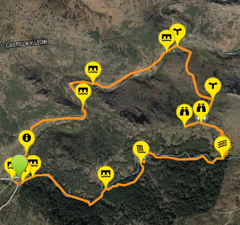 Ruta circular que recupera las callejas que han unido tradicionalmente los núcleos urbanos de Santa Maria de la Alameda. La Estación, Navalespino, Santa María, Robledondo quedan unidos por esta ruta que también nos invita a conocer el río Aceña, bosques de rebollos y praderías de altura entre otras muestras de la variedad medioambiental del término municipal.